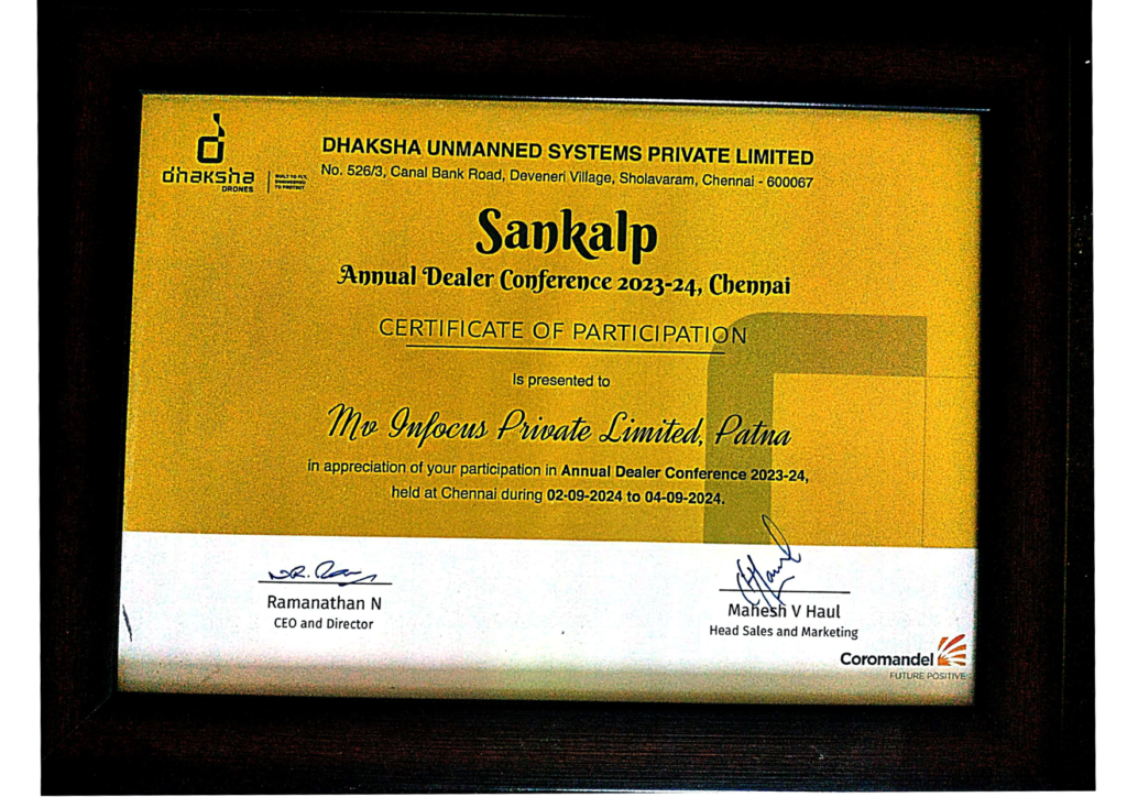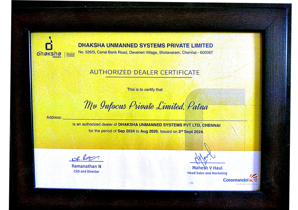 MV INFOCUS PRIVATE LIMITED is a team of engineers, drone pilots, GIS experts, and software developers that has delivered numerous drone solutions in India. We provide complete end to end solutions for our clients from drone data acquisition, drone data processing, analysis, and development or integration of web and mobile applications. With access to a fleet of drones and a network of drone pilots across India, we can mobilize teams and deliver projects in a short period. Our systems include both fixed-wing and multi-rotor UAVs carrying payloads such as high-resolution cameras, thermal cameras, NIR sensors, high zoom cameras, and multi-spectral sensors.